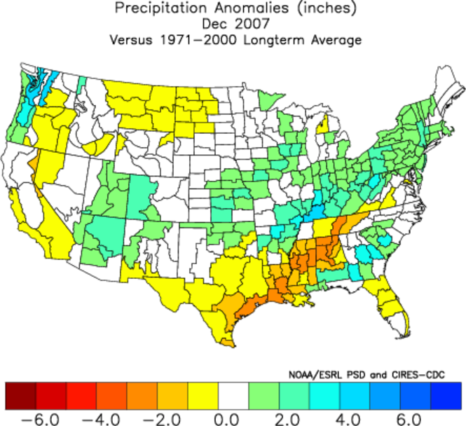 - Precipitation: 1.74"; -1.78" below normal