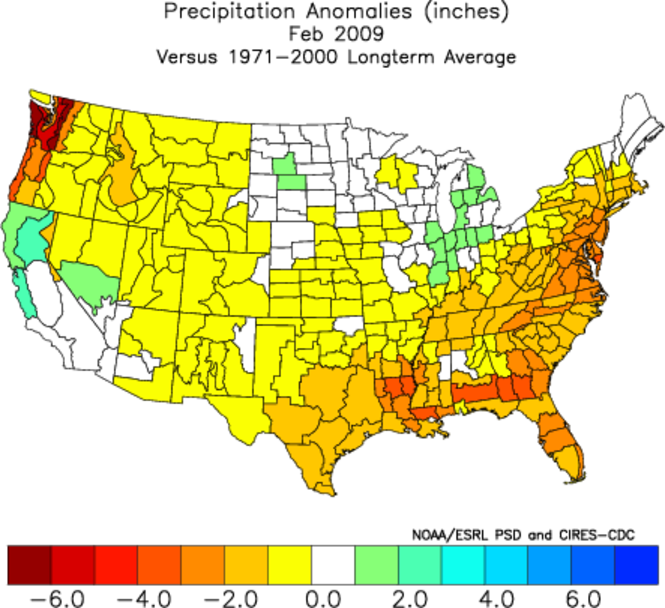 - Precipitation: 2.00"; -1.50" below normal