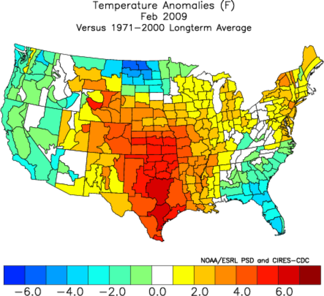 - Temperatures: +2.3 degrees above normal