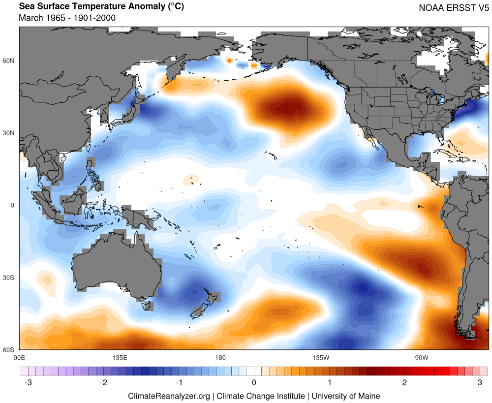 | **Anomalies calculated using 30-year climatological values, updated every five years. The updating of base periods removes observed warming trend in Nino 3.4 region. Anomalies generated from CPC** | |||